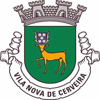 ARMAS – De verde, um cervo passante de ouro, armado de prata, olhando em frente, contendo entre as hastes um escudete de azul carregado de cinco besantes de prata. Coroa mural de prata. Listel branco com os dizeres: “VILA NOVA DE CERVEIRA”, de negro.